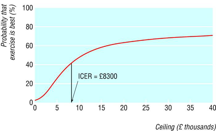Probabilité que l’exercice soit la meilleure intervention (%) RCED = 8 300 £ Plafond (milliers £) |