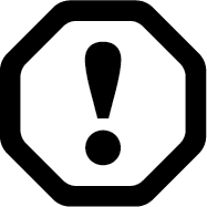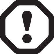 Black exclamation point in a black octagon, warning symbol.