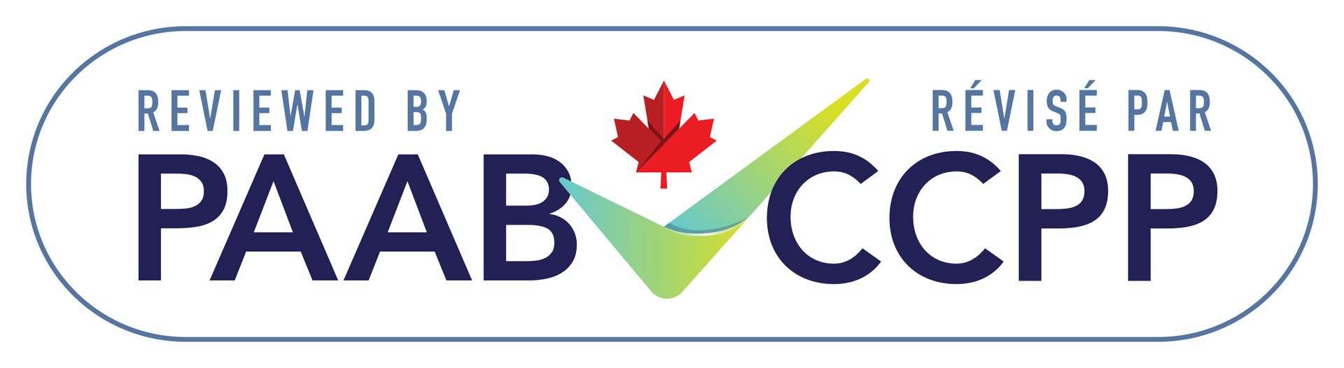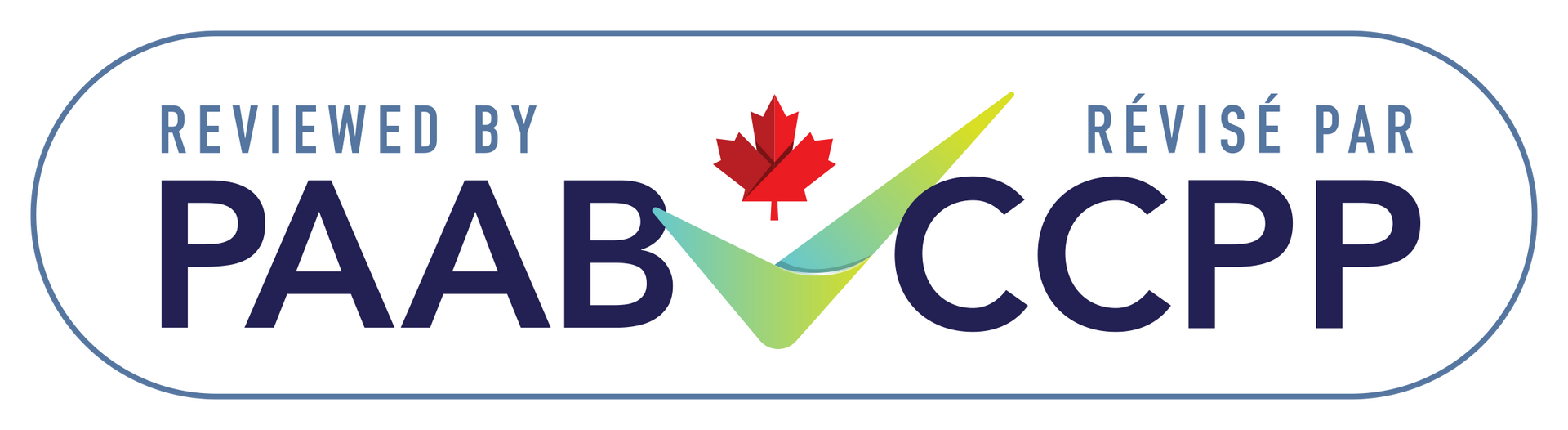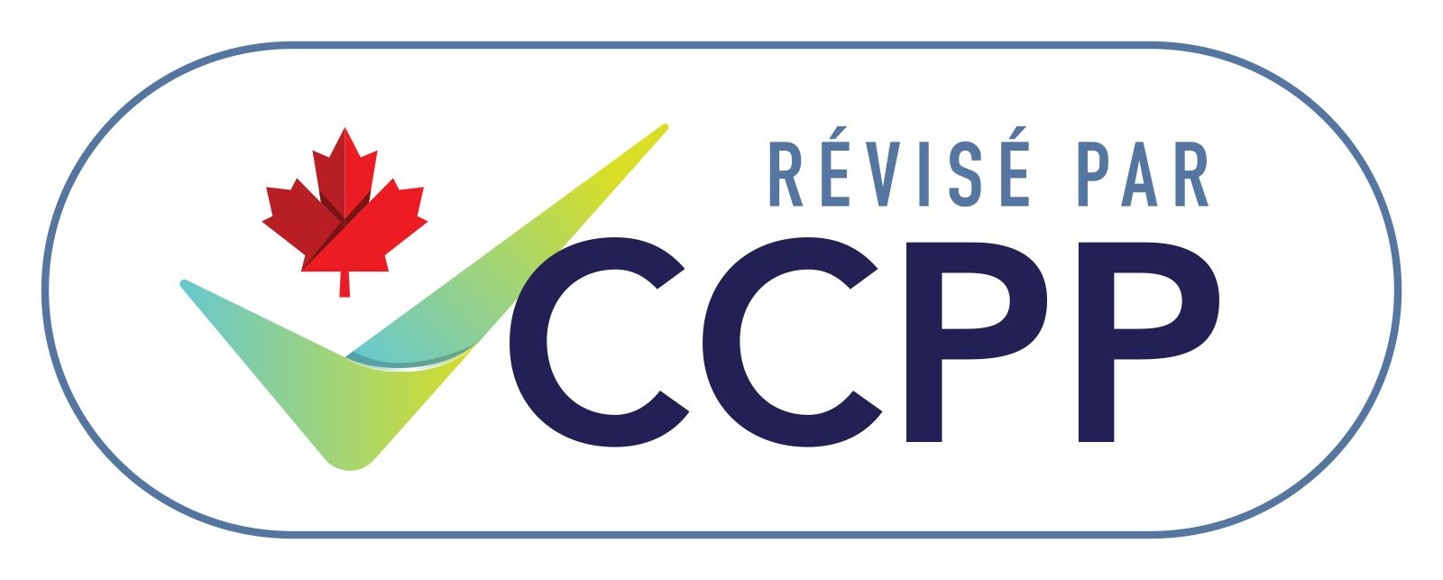 Logo with a red maple leaf, green checkmark, and the text